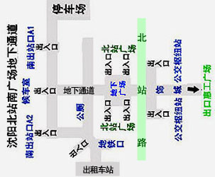 南出站口在沈阳北站的正面,也是南面,正前方是沈阳金融商贸开发区(沈河区),西行300米就是和平区.青年大街就是沈阳金廊.北站广场雕塑所指的方向是南,北站正前方是友好街.惠工广场,东面是瑞心东方酒店.西面是邮政大厦 。 |